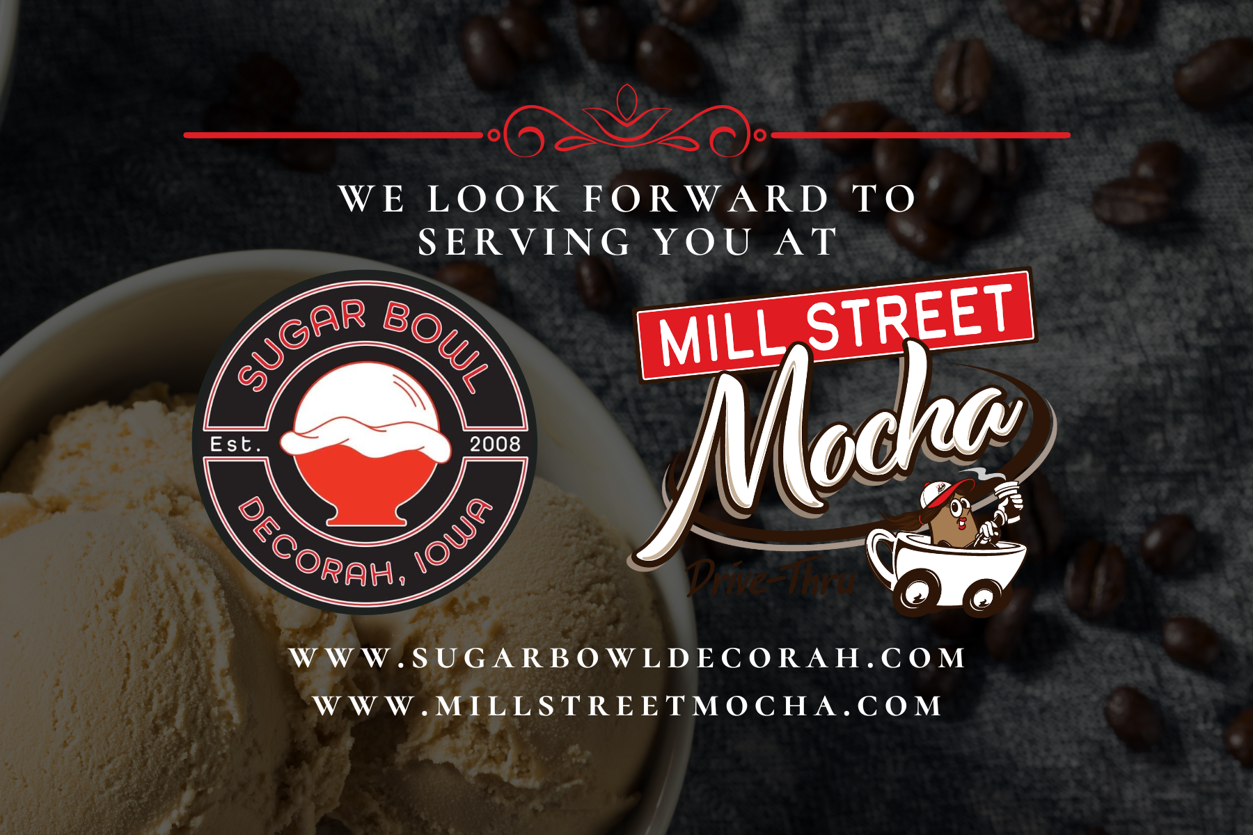 Our gift cards are redeemable at Mill Street Mocha and Sugar Bowl in Downtown Decorah.